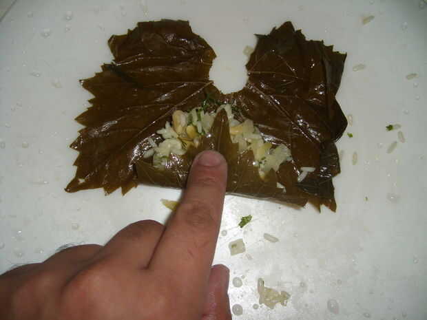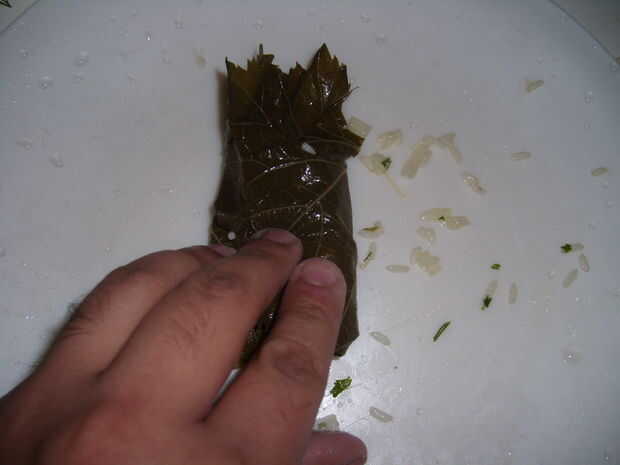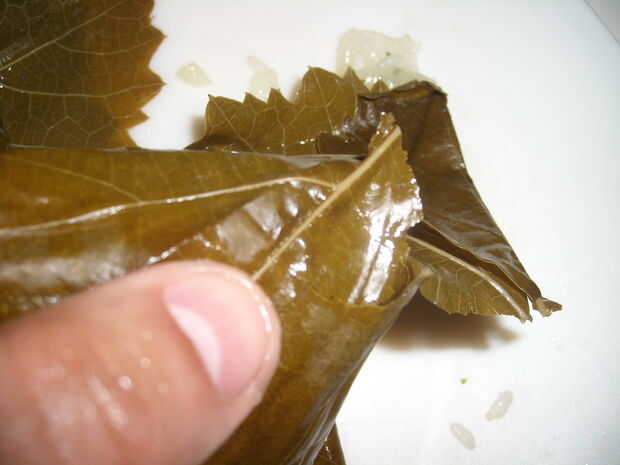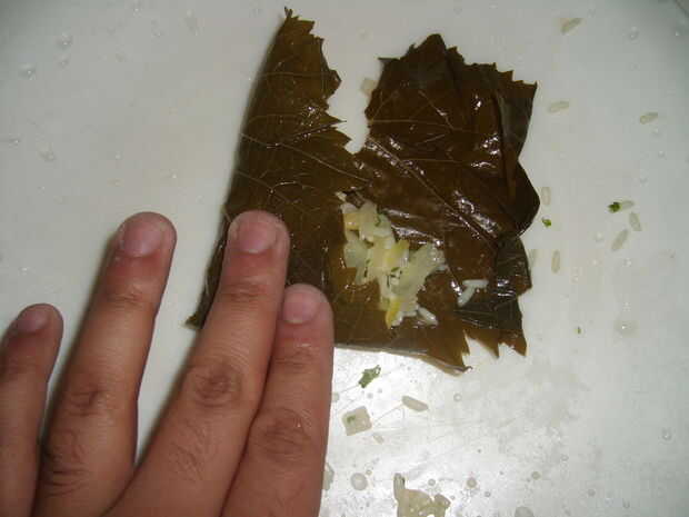 Añadir un poco de relleno cerca de la punta de la hoja y doble sobre.