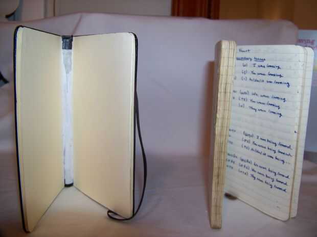 Nota: Hay una marca de revistas moleskine que darle tan buena calidad (si no mejor) para la mitad del precio de la marca Moleskine (capital M). Que la marca lleva el nombre de Piccadilly y puede encontrarse en la librería de las fronteras o en línea http://www.piccadillyinc.com. Tienen muy buenas ofertas para comprobarlo en algún momento.