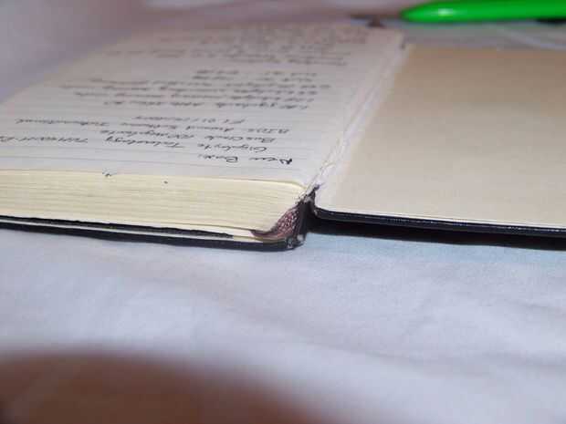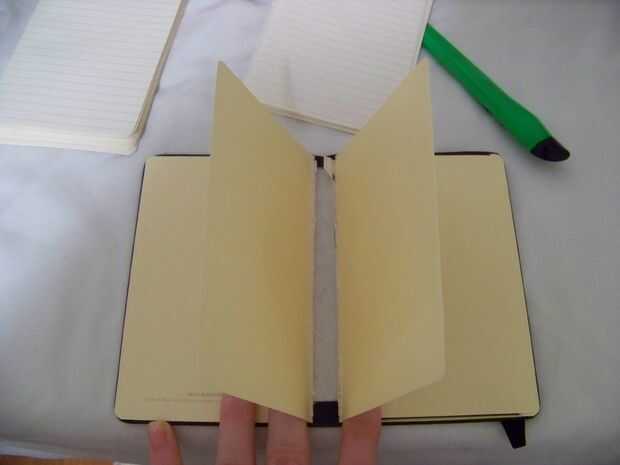 Echa un vistazo a las imágenes de abajo. En tu moleskine, la primera y la última página son ligeramente diferentes que el resto porque torpemente se pegan a las dos páginas que me refería en el primer párrafo. Agarra la primera página que ligeramente se pega a la página de contacto y recompensa y simplemente tire de él hasta que se aparte. Refiera a los cuadros a continuación para comprender dónde cortar. Todo lo que tienes que hacer es derecho de la rodaja en el borde de la página pero solo que está no cortando a través de la espina dorsal de la cubierta de la notebook, si no que no. Una vez hecho eso, ir a la última página y repita el paso. Mi viejo moleskine fue tan usado que cuando saco las páginas ligeramente pegadas aparte que separan automáticamente el papel del resto de la notebook, así que tal vez tendrás suerte de esa manera.
