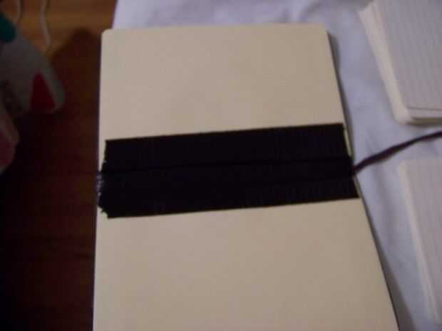 Una buena tira de cinta aislante negra se asegure la tira y hacer la columna un poco más fuerte. La altura de la cubierta de la notebook es aproximadamente 5,5 pulgadas así que me aseguré de hacer la tira de cinta un poco más pequeño. Me llevó las tuercas que sobresalen de la parte superior o inferior de la cinta. Esto también es el momento para asegurarse de que pones el marcador púrpura por asegurar bajo la cinta.