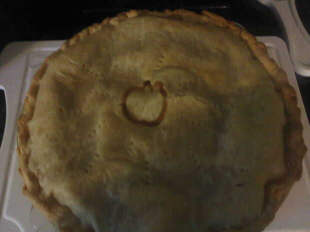 Para hacer una tarta, vierta 1 cuarto frasco de tu relleno de tarta de manzana una corteza de tarta no cocida de 8-9 pulgadas echa unos trocitos de mantequilla (mmm, mantequilla). Tápala con la corteza superior, recorta y bordeando los bordes y luego corta unas hendiduras en parte superior para el vapor se pueda escapar.