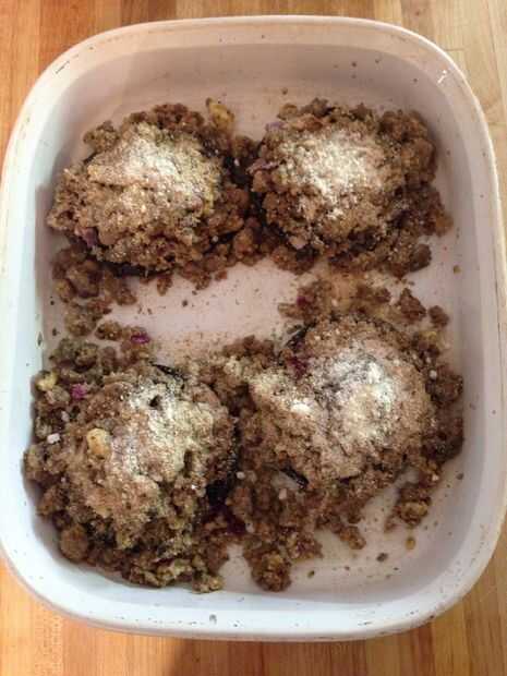 Esta mezcla en las tapas y espolvorear un poco de pan rallado extra o aceite de oliva en la parte superior si lo desea.