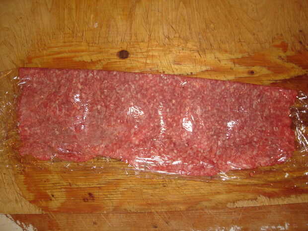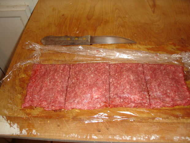 Extraer todo el aire que puede quedar atrapado en la hamburguesa y luego presione hacia abajo suavemente para sellar en los lugares apropiados. Usted puede incluso asperezas o restos de uso para reparar cualquier lugares que eran demasiado fino.