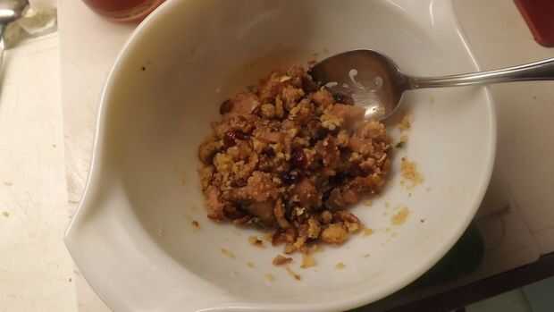 4. Si aún no lo ha hecho, desmenuzar el pan tostado en un tazón de tamaño mediano...