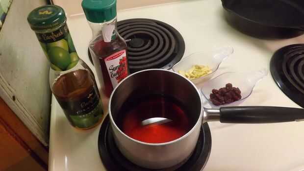 1. Calentar los jugos de frutas a fuego lento en una cacerola pequeña.