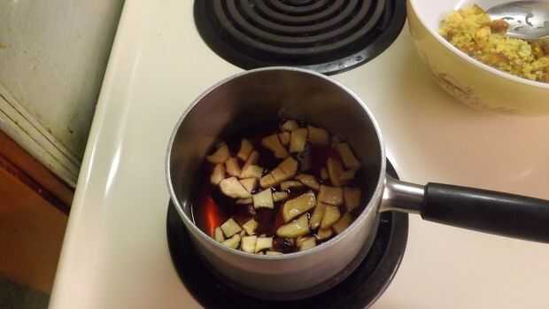 Preparar el relleno mientras que las chuletas estén doradas están enfriando y el horno se está calentando.