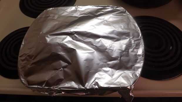 Cubrir el recipiente con papel de aluminio y hornear durante 30 minutos.