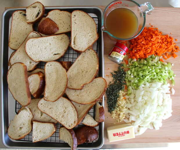 • una hogaza de pan (alrededor de una libra - estoy usando batard amargo porque es delicioso)