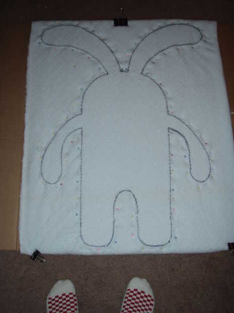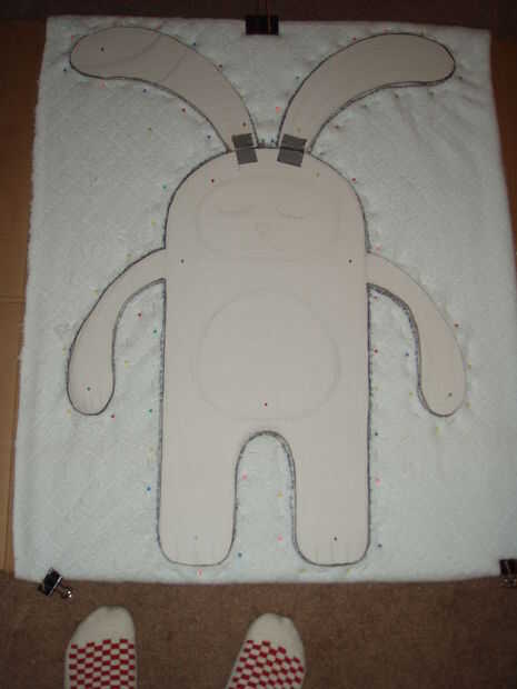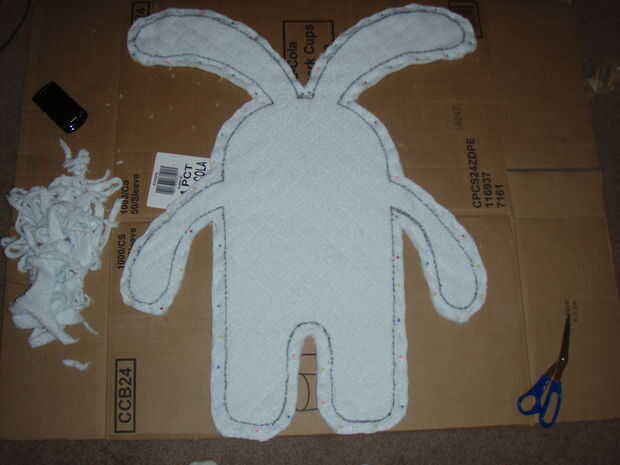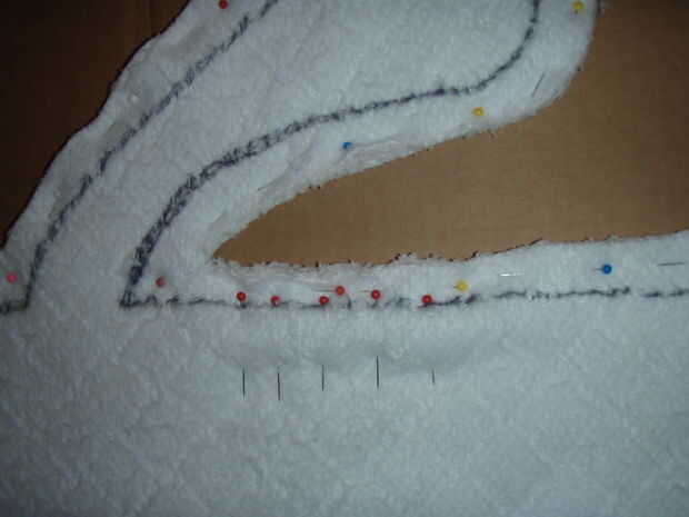 ¿Hacer? OK, ahora, asegúrese de que todo es inmovilizado y empezar a cortar alrededor de las líneas, dejando sobre la asignación de 1/4 pulgadas fuera de él por lo menos. Asegúrese de que usted marque claramente la apertura a través del cual podrá voltear la muñeca adentro hacia fuera, para que accidentalmente no cose lo cerrado. (Confía en mí, desea realizar esta muy visible)