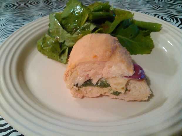 A buena; demasiado fácil. Lo 1 º que pensé fue llamar a esta receta "A la parrilla pollo Cordon Bleu", pero muchas personas asocian pollo Cordon Bleu con una pechuga de pollo rellena de jamón y queso y cubierto con huevo y harina o miga de pan;