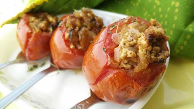 Tomates rellenos es muy diferente plato que se sirve junto con el plato principal.