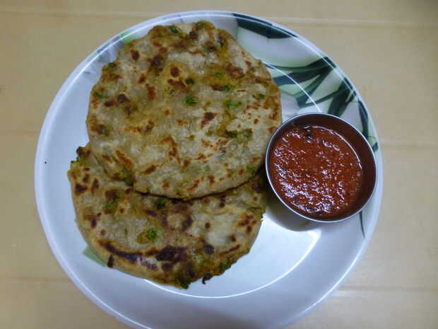Relleno Paratha con guisantes verdes - patata Masala (9 / 9 paso)