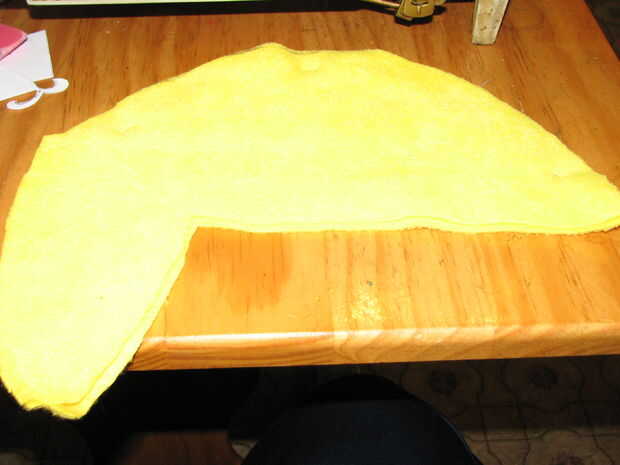 después de tener las medidas esto es lo que debería ser el beenie. Añadir una franja de amarillo entre las dos piezas a lo largo de la parte superior para hacer la más amplia de beenie.