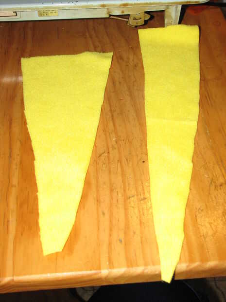 utilizar el beenie para hacer que la cáscara exterior de la peluca y añadir piezas adicionales a la parte superior y el flequillo antes de cortarlo hacia fuera. utilizar su ojo para hacer el pan y el tamaño que desee el flequillo. recortar 2 triángulos de la misma longitud que el moño y flequillo. Estas se utilizarán para agregar plenitud a ellos.