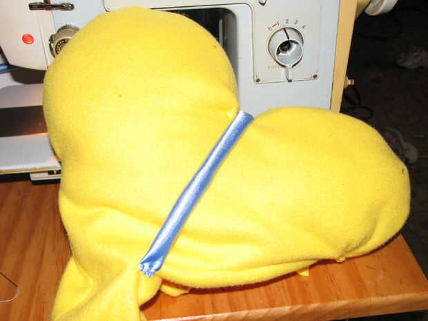 de la materia el moño y flequillo con la pollyfill a la rigidez que desee. mano coser las aberturas cerradas. hacer un tubo de la banda de la cabeza y gire derecha lado hacia fuera y la mano la puntada la peluca.