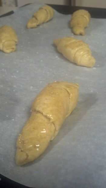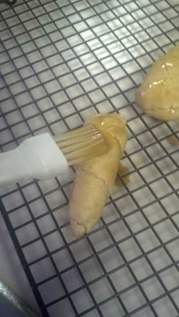 Cepillo Crescent con mezcla de huevo y transfieren a galletas.