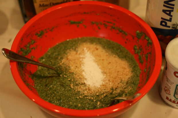 Sólo tiene que añadir una cucharada o dos de pan rallado y una pizca de polvo de hornear. Si hay un montón de llenado izquierda puede agregar otro huevo para darle más elevación.