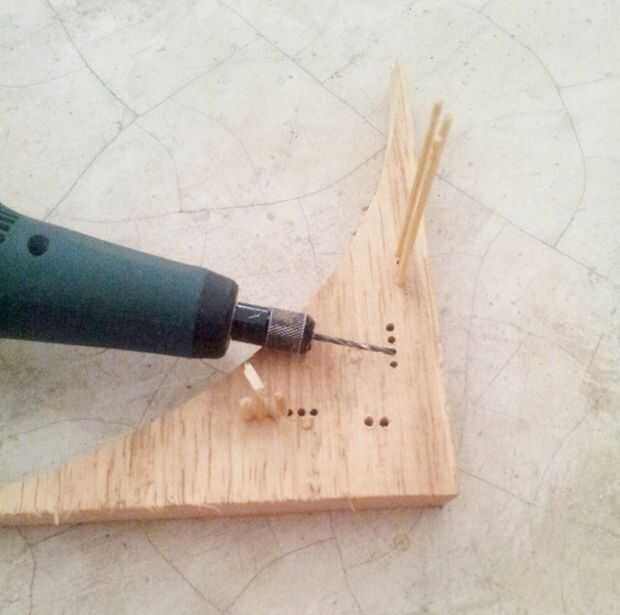 Ahora perfore y pruebe la colocación de sus palos. Terminé usando sólo palillos más delgado y tenía un taladro de broca que era perfecto para él. Forma agradable y cómoda!