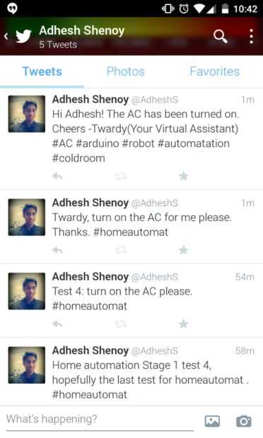 Y ahora puede presumir de su asistente personal en twitter. * redoble * usted puede probar por cualquier twitteando sobre su reloj (o cualquier otro dispositivo). Cuando usted un tweet con la palabra clave, su PA se tweet también a usted, basado en el proceso emprendido.
