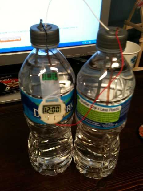 este instructable le mostrará cómo construir un reloj de agua funciona. Aquí es lo que se necesita. 1 cables de zinc y cobre 2. cables (positivos o negativos) 3,3 botellas de agua 4. reloj digital baja tensión 5. tapas de botellas de agua de