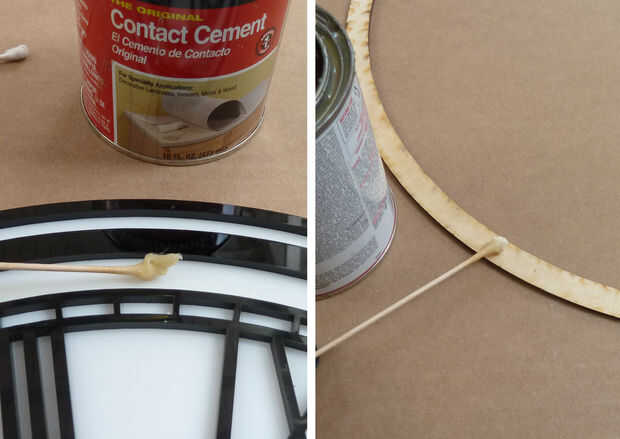 Me adherí los anillos de madera para el acrílico con cemento de contacto. Como siempre con cemento de contacto, me aplica una fina capa en toda la superficie y deje secar antes de juntar en su lugar.