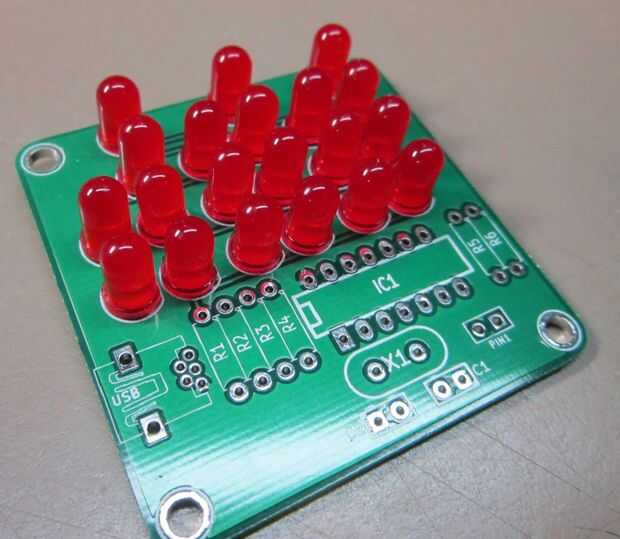Ahora debe tener 20 LEDs soldadas y orientado correctamente. Es importante que se enfrentan a derecho para que coincida con los orificios en el caso.