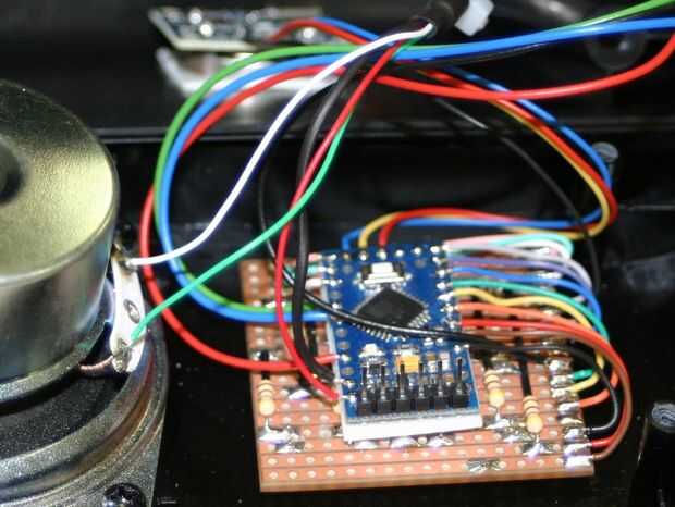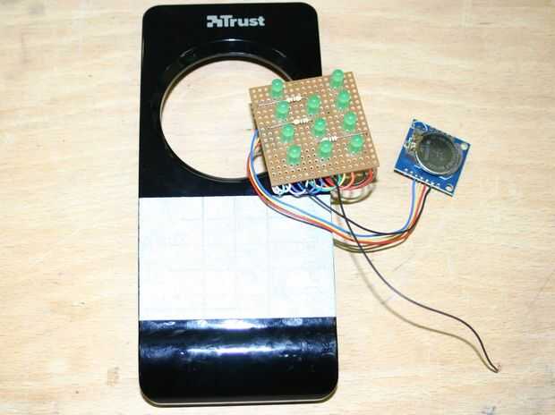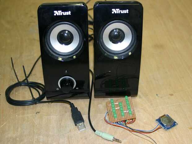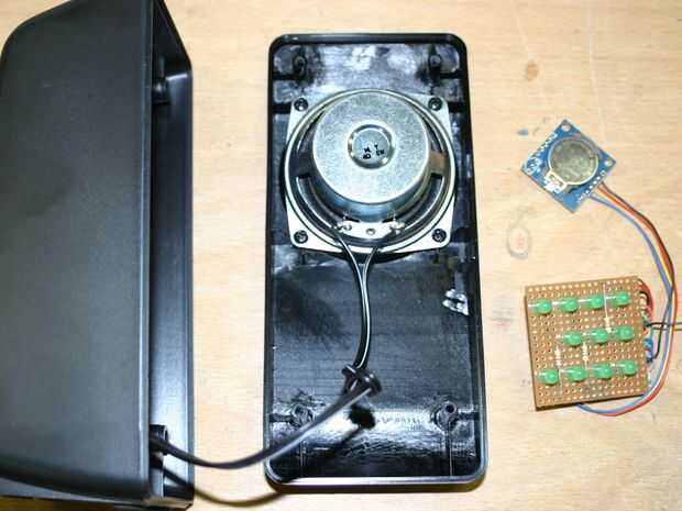 El orador parecía ideal para alojar los LEDs y como los altavoces fueron amplificados podría utilizar la tensión USB para alimentar el reloj. Sin embargo el altavoz que tiene el amplificador y el USB de 5 voltios no tienen espacio para el reloj por lo que el orador de "esclavo" iba a ser utilizado para albergar el reloj, que luego iba a correr un par de cables de altavoz amplificado al esclavo a los 5 voltios de la fuente.