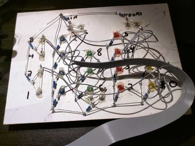 Por un tiempo ahora tengo ganas de hacer un reloj binario, pero después mirando a su alrededor, decidí que quería algo un poco diferente. Así que decidí solo muestra las horas y minutos y solo muestra un reloj de 12 horas, esto significa que sólo tie