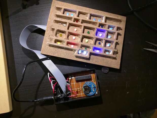 Por un tiempo ahora tengo ganas de hacer un reloj binario, pero después mirando a su alrededor, decidí que quería algo un poco diferente. Así que decidí solo muestra las horas y minutos y solo muestra un reloj de 12 horas, esto significa que sólo tie