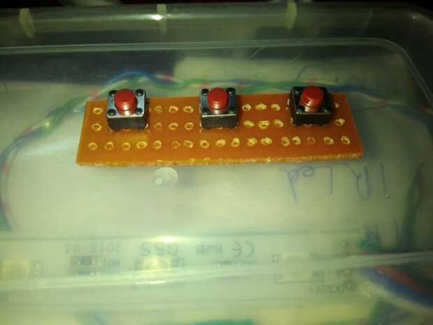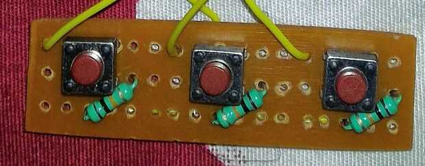Ahora Conecte los tres botones en el tablero luego de la soldadura de las resistencias (10 Kohm). La conexión se realiza según el esquema como se muestra en el paso anterior. Conectar los botones al pin analógico A0, A4 y A5.