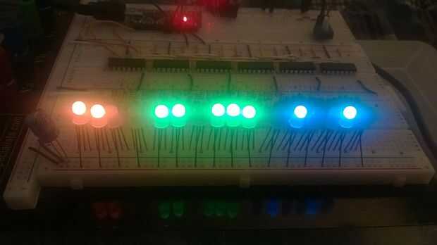 Este es mi primer Instructable. Actualmente estaba trabajando en otro proyecto, un POV reloj (también conocido como una hélice), pero quedé perplejo con la pcb que proceso y la diferencia de potencia de inducción pero esa es otra historia que voy a terminar ojala pronto. Sólo tipo de armé esto anoche por aburrimiento. Esto es, como sugiere el título, un reloj binario de RGB con Arduino, oh woop-de-doo. Lo hice en un tablero de pan como que no tiene la intención de mantenerlo, pero definitivamente puede caber para arriba en un pcb y buscar un recinto y que se vea increíble.