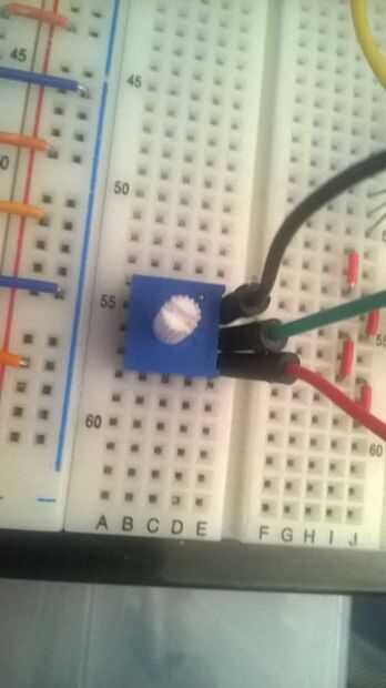 El potenciómetro es muy fácil. Hay 3 pines conectan VCC o planta con el conector de la izquierda, lo contrario del patillas derecha y el medio es los datos. Medio va a A7 en el arduino asignado en el código.