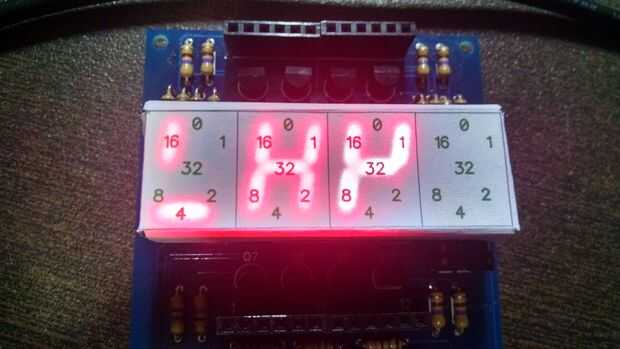 Todos los números enteros dentro del rango de horas (00 a 23), minutos y segundos (00 a 59) son inferiores a 64 y así puede arreglar en 7 segmentos.