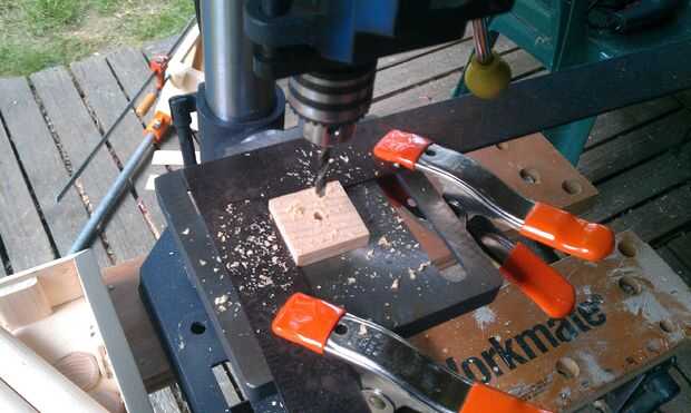 Antes de que el arquitrabe se pega a las otras partes principales, las columnas se sujetan a la parte inferior del tapajuntas con tornillos de alta resistencia. La parte superior de la columna está permanentemente tan pronto como se pegan las otras piezas. Pero puesto que el cuadro inferior está separado de la cubierta interior la columna de la parte inferior se puede desmontar (y estaba a menudo antes de que pudiera averiguar todo). Esto es importante para que la estructura de madera puede ser teñida y barnizada sin el reloj en su interior para evitar que el latón decorativo está arruinado.