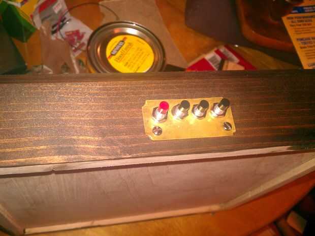 Me imaginé una mancha nogal oscuro bonito el mejor y también contrastar el latón mejor. Utilicé una capa de colorante y dos de barniz para darle un brillo agradable.