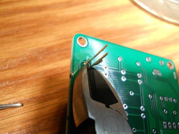 Una vez que se sueldan en su lugar, se pueden acortar los cables de fuera.