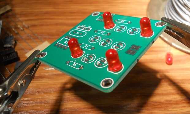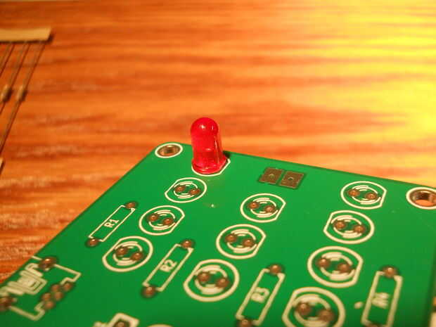 Colocar los LEDs en las cuatro esquinas en primer lugar, permitirán un ambiente de trabajo incluso y hacer colocar LEDs recto y al ras contra el tablero, más fácil.
