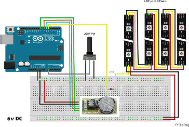 No he aún cometido esto a un PCB (utilizará placa perforada) como puedo agregar una pantalla LCD en ninguno para un futuro lejano con un sensor de temperatura y mostrar la fecha y la hora y la temperatura en formato estándar, razón por la cual actualmente no existe ningún otro esquema...