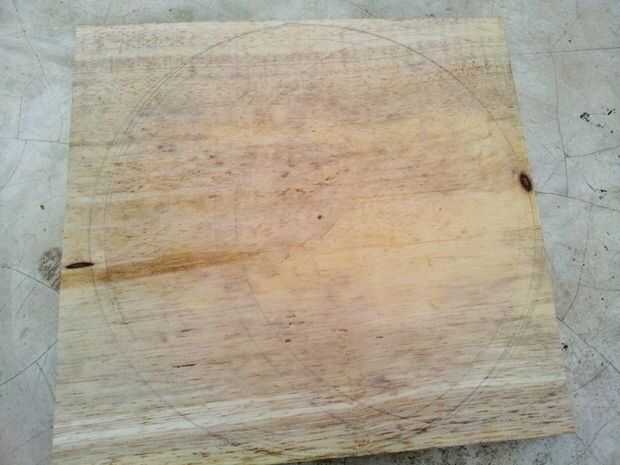 Madera cuadrado o círculo. Mina fue aproximadamente de 11" de cuadrados.