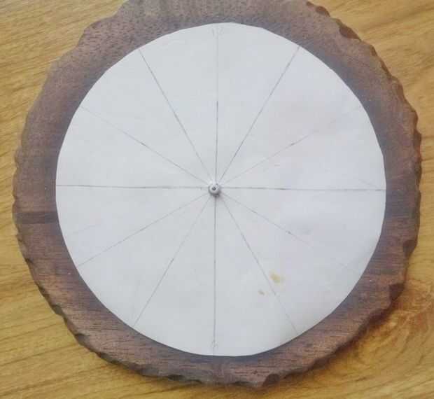 El reloj de la mancha. Hacer una plantilla para los números. Colocar en el reloj y marca. Perforaciones pequeñas el tamaño de los remaches, por lo que los remaches se calcen bien.
