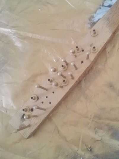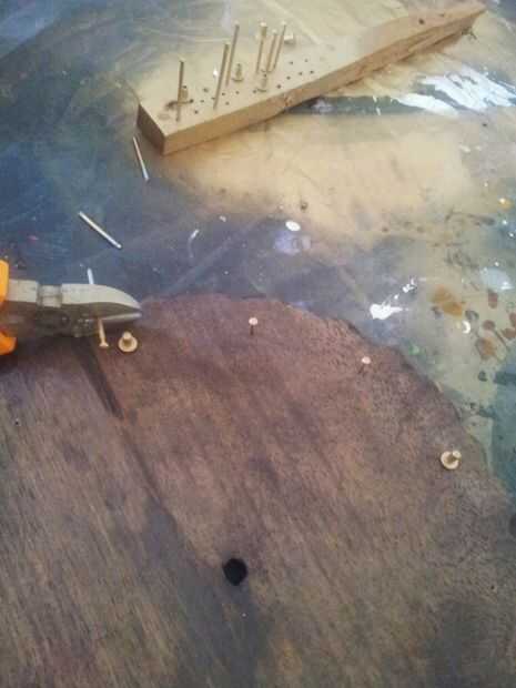 Para los números 12, 3, 6 y 9 que quería la parte entera superior del remache. Para el resto noqueó a las barras. Rocíe los remaches y mecanismo del reloj.