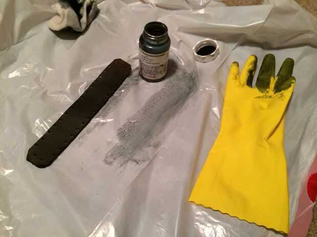 Teñir el cuero en blanco (Asegúrese de proteger la superficie de trabajo con plástico).