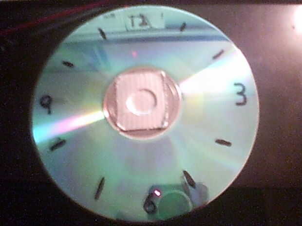 Todo lo que necesitas hacer para este paso es poner pequeños trozos de cinta aislante sobre el agujero en el CD. Entonces su tiempo para escribir los números! cerca de su muy simple para conseguirlo... Usted podría utilizar un transportador para obtener perfecta pero sólo adiviné apenas escribí 12, 3, 6, 9 y utiliza guiones para los otros números.