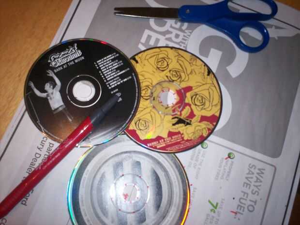 Reloj barato walmart, tijeras, marcador lavable, algunos cds y pegamento.