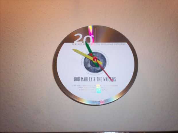 Ahora que se acaba el reloj de colgar y admirar. Si lo desea, puede pintar las manos. Otra forma que hice este reloj fue tomar un cd y súper pegamento en como se ve en la imagen.