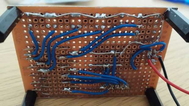 Preparar los cables de conexión y Suelde todas las conexiones. No importa que de los 20 pines IO la matriz de LED y botones están conectados ya que se puede establecer en el software.