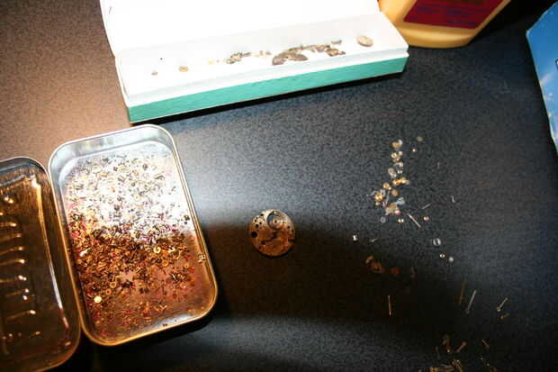 -piezas de mecánica varios (** importante ** -, he podido encontrar enteros movimientos mecánicos en mercados de pulgas y por mejores precios en línea, pero es muy importante que entiendas la magnitud de lo que compres, especialmente si está en línea y usted no puede verlo. Como se verá, muchas de las piezas que tengo en línea fueron demasiado pequeños para usar. En lugar de encontrar y comprar piezas por separado, me pareció mejor comprar movimientos de reloj de pulsera toda y luego a desmontarlas a ti mismo.