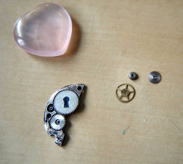 Este colgante está hecho de un un marco bisel vacía con una escena de la arcilla de polímero esculpidas y cocido al horno en él.  El espacio restante en el bisel fue había llenado con resina y permite curar.  El mismo concepto podría aplicarse a anil