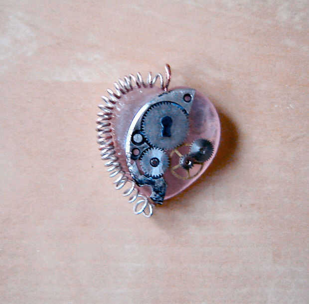 Este colgante está hecho de un un marco bisel vacía con una escena de la arcilla de polímero esculpidas y cocido al horno en él. El espacio restante en el bisel fue había llenado con resina y permite curar. El mismo concepto podría aplicarse a anil