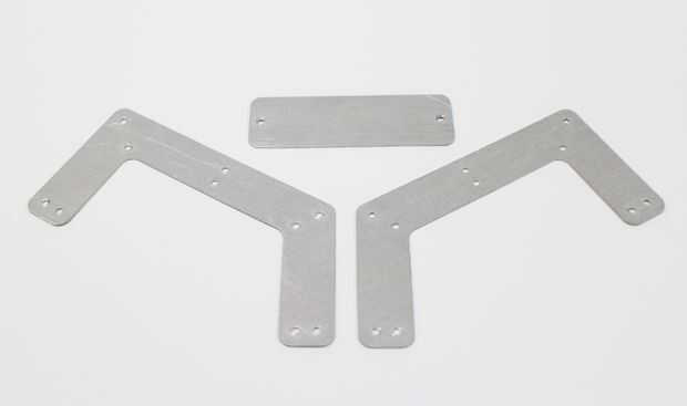 Las placas laterales sobrevivieron hasta el diseño final, pero no la placa insignia del metal principal. Corté las piezas de. 020" espesor aluminio. He unido los archivos vectoriales para el diseño anterior. Tengo suerte de tener acceso a un chorro de agua para corte rápido de metales 2D, pero el diseño es bastante simple, con curvas redondeadas audaces que ninguno demasiado difícil de cortar con una sierra y un taladro. Después de que las placas fueron cortadas, I lavado, secado y lijado con papel de arena del curso para darles un aspecto pulido. Inicialmente considerado como lijar hasta lograr un acabado impecable, pero estaba muy satisfecho con el patrón de desgaste del papel de lija de curso. Los perfiles de las placas se unen por encima.